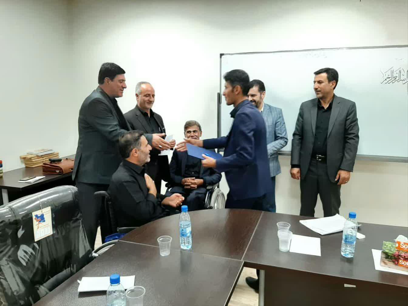 در پایان این جلسه ، «وحید صالحی» به عنوان جوانترین مدیر مؤسسات استانی موسسه ایثار معرفی و حکم وی که به امضای مدیر عامل موسسه رسیده بود به ایشان اعطاء شد.